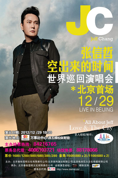 “情歌王子”張信哲將于12月29日在北京萬事達(dá)中心舉辦“空出來的時(shí)間”北京演唱會(huì),這場(chǎng)演出將是張信哲2013年世界巡回演唱會(huì)的首場(chǎng)演出。自出道以來就演唱了無數(shù)經(jīng)典情歌的張信哲,卻始終有一顆“搖滾”的心,不僅會(huì)在工作之余會(huì)經(jīng)常聽搖滾曲風(fēng)的歌曲,在近幾年的個(gè)人作品中,也越來越多嘗試搖滾曲風(fēng)。而在這次首次擔(dān)任導(dǎo)演的北京演唱會(huì)中,阿哲還將特別設(shè)立“華麗搖滾”的橋段,可見“情歌王子”此次是下定決心大玩搖滾,要帶領(lǐng)觀眾在新年前夜HIGH翻萬事達(dá)中心!