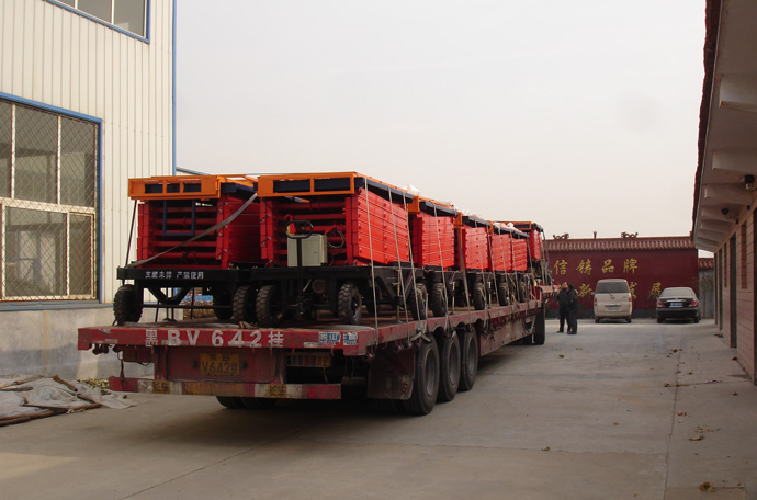 河北三力升降設(shè)備有限公司發(fā)往北京的12臺剪叉式10米升降機(jī)整裝待發(fā),此次發(fā)出的剪叉式升降機(jī)型號為GTJY-0.3-10和GTJZ-0.3-10各6臺。 始于客戶需求,終于客戶滿意,三力全力打造零產(chǎn)品零缺陷,服務(wù)百分百!